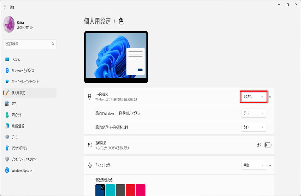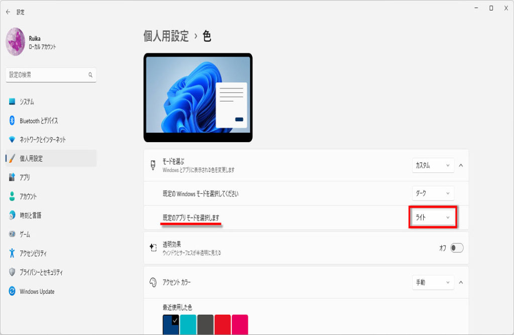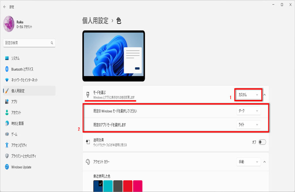 Windows11はダークモードを設定することができます、エクスプローラー、設定、