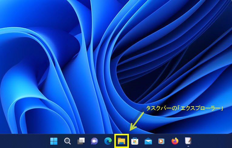 タスクバーの「エクスプローラー」ボタンをクリックします。