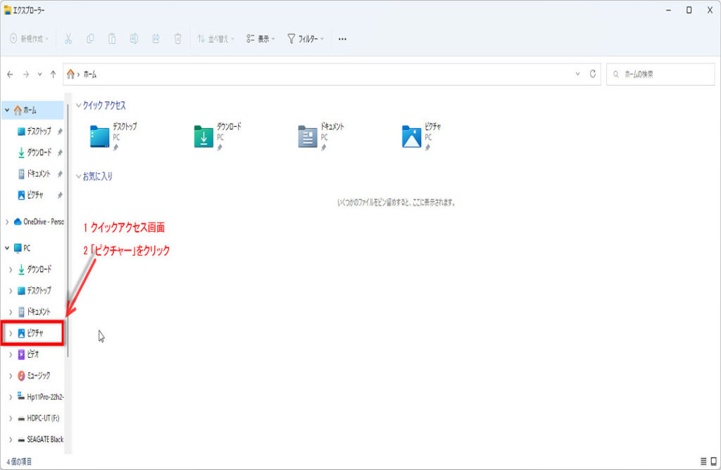 1 「エクスプローラー」のクイックアクセス画面が表示されます、