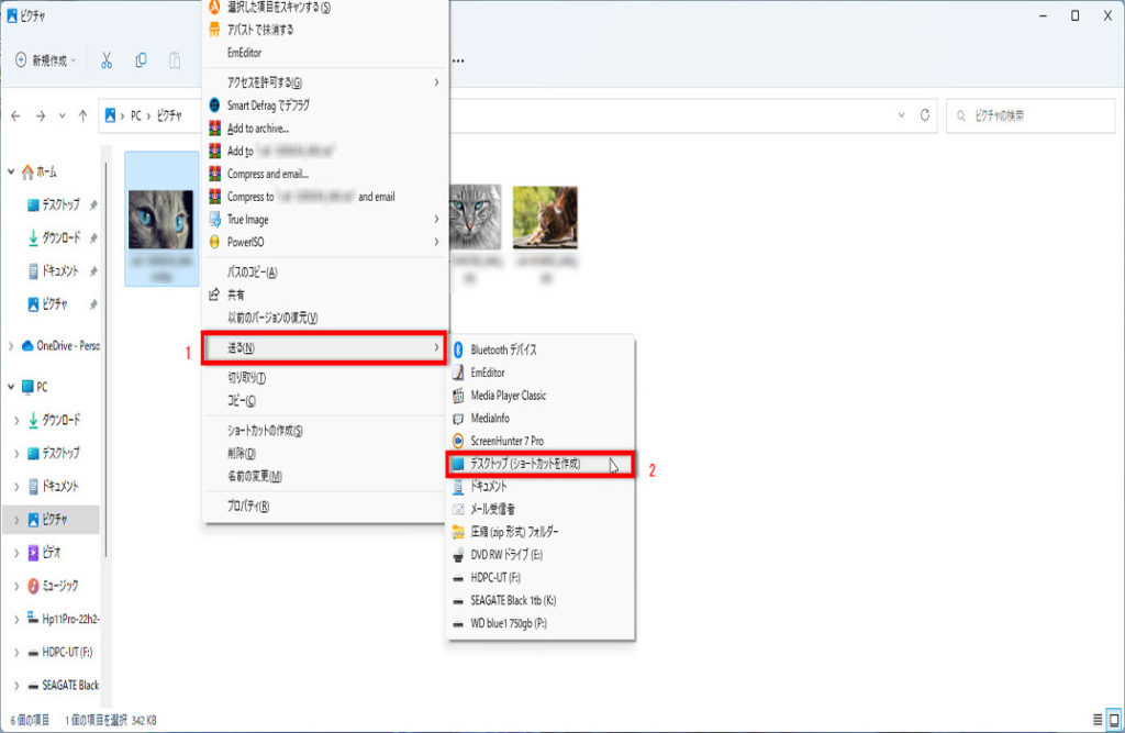 2 例として「ピクチャー」フォルダーに保存している、画像データのショートカットを作ります。