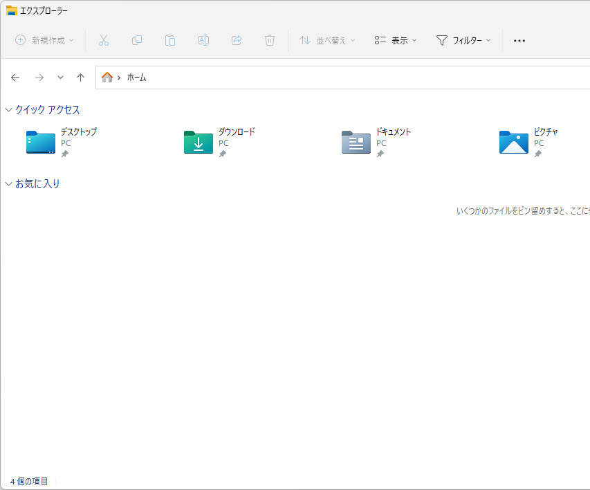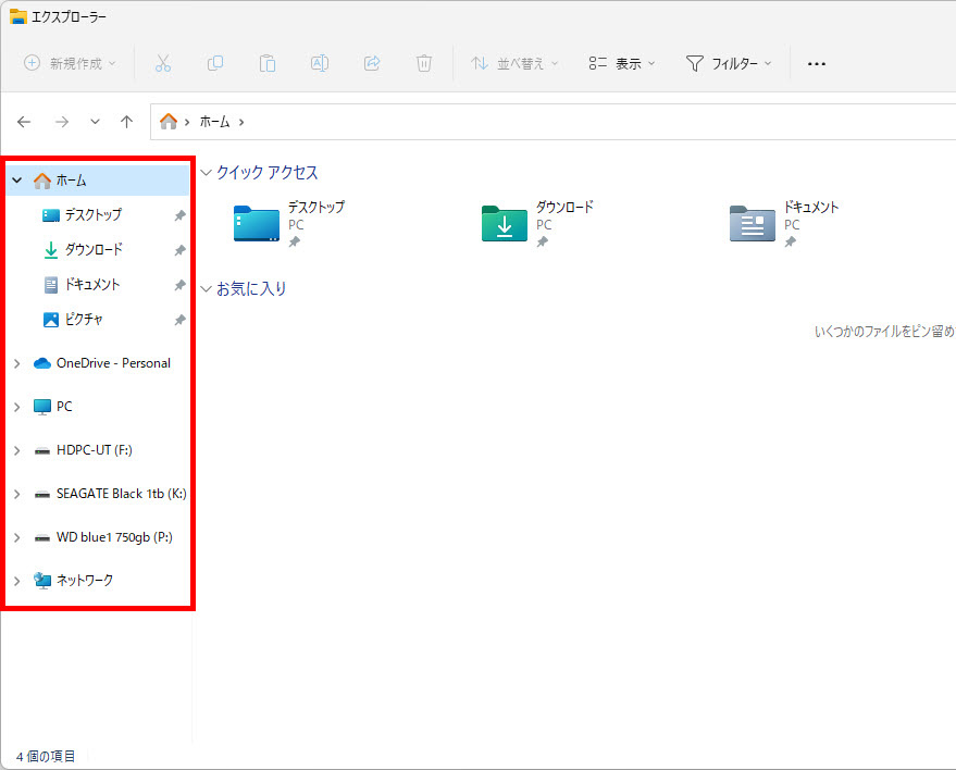 Windows11の初期設定ではエクスプローラーの左メニューに全てのアイコンが