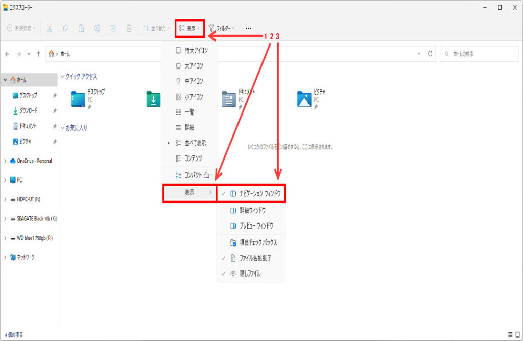 Windows11でエクスプローラーの左メニューを有効または無効にする方法