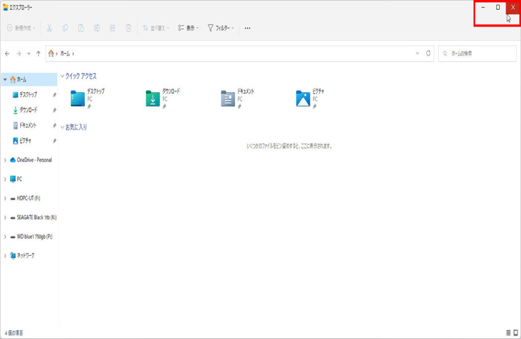 「エクスプローラー」画面の右上の「×」をクリックして閉じます、操作は以上です、