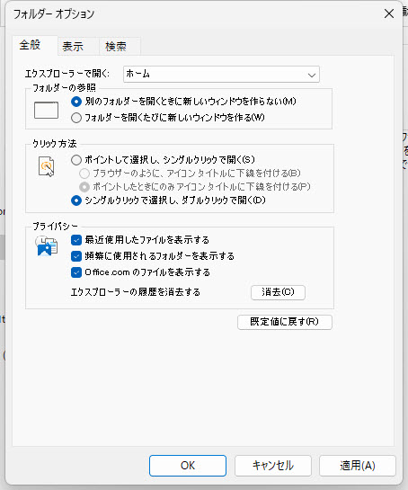 「フォルダーオプション」が表示されます。