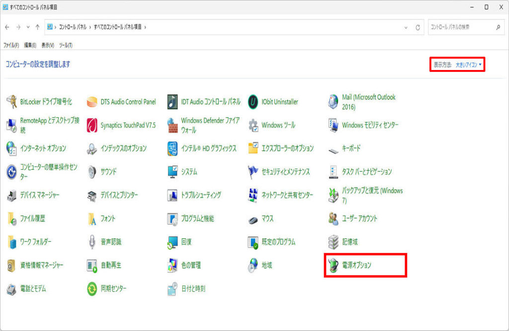 「コントロールパネル」が表示されます、表示方法は「大きいアイコン」にします、