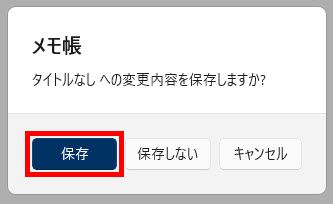 例えば、アプリ(メモ帳)の編集中は、注意画面が表示されてシャットダウンできません、