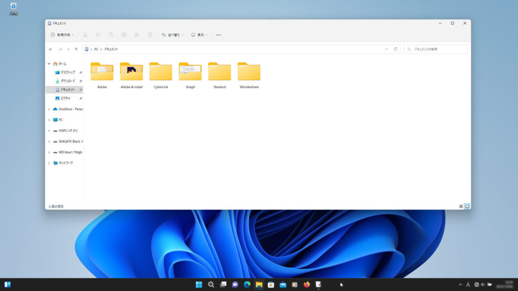 (ここでは、例としてドキュメントフォルダーを開いた状態で再起動します)