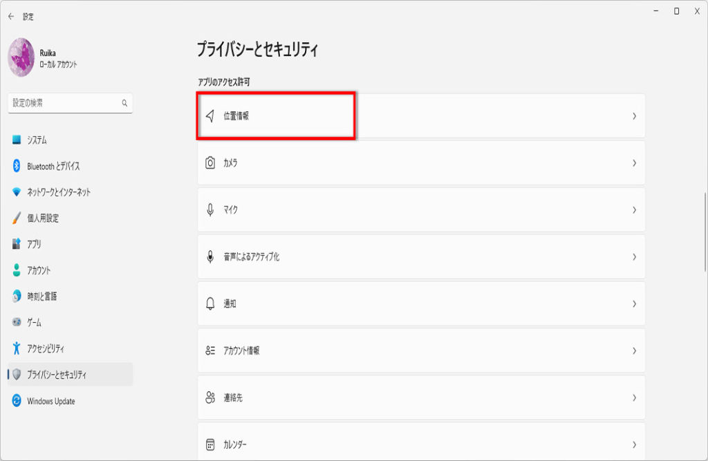 「位置情報」をクリックします。