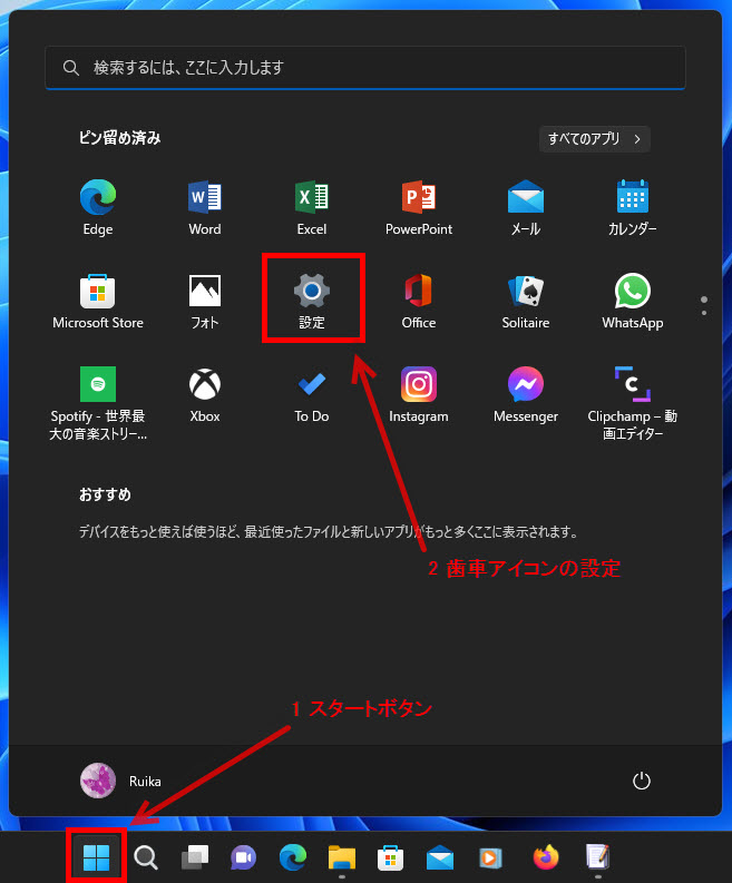 1 タスクバーの「スタート」ボタンをクリックします、