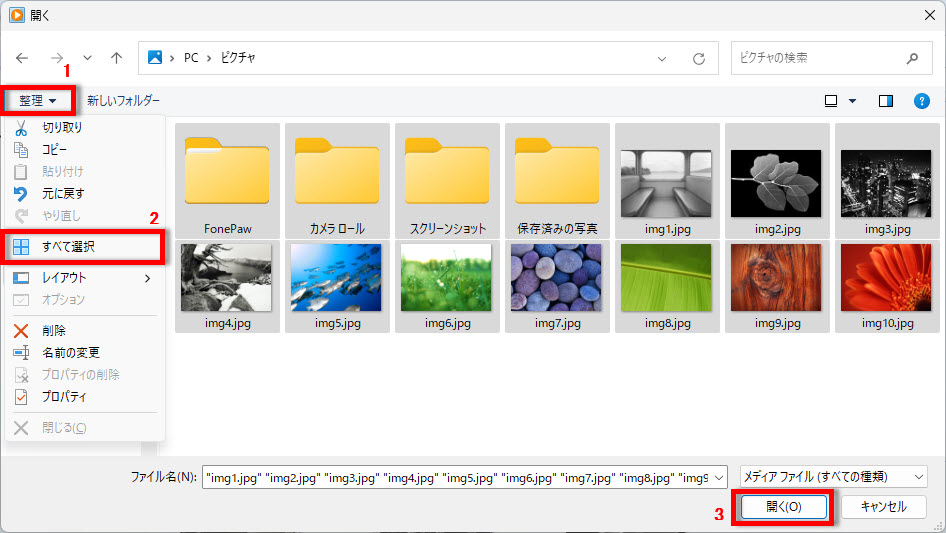 フォルダー内の写真ファイルを全て選択