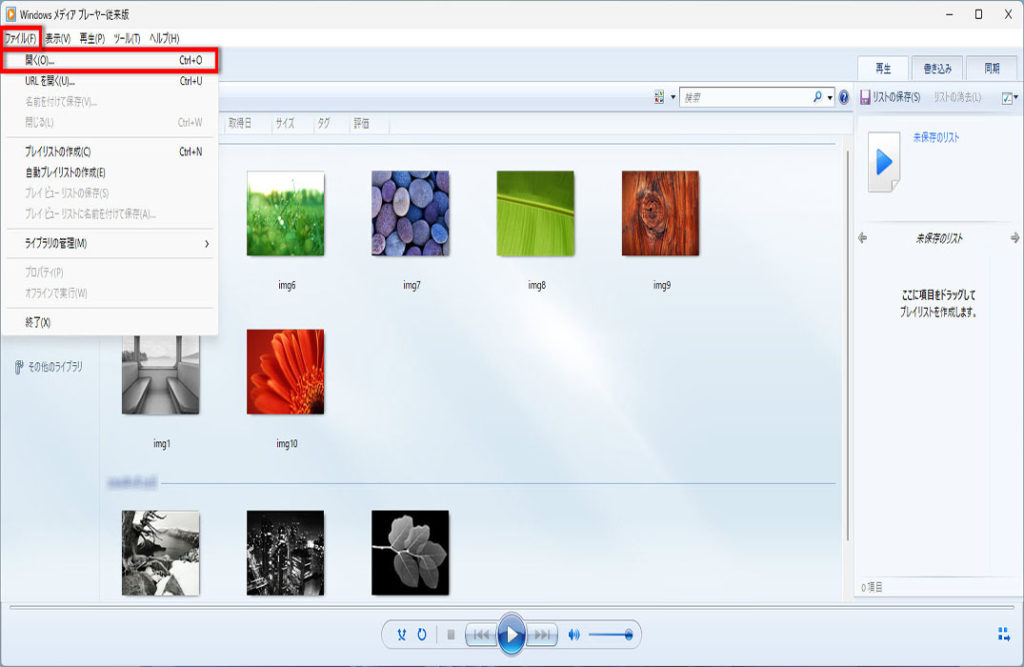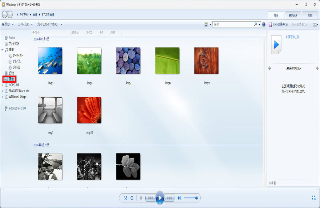 ここでは、Windows Media Player従来版で写真をスライドショーで見る方法について