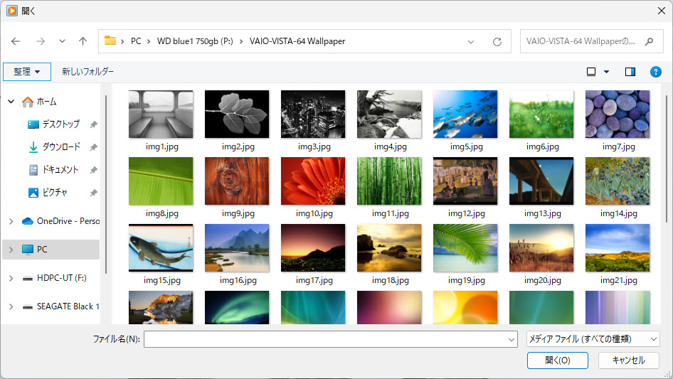 (左メニューから→PC→(P:)→VAIO-VISTA-64 Wallpaperで開く事もできます)