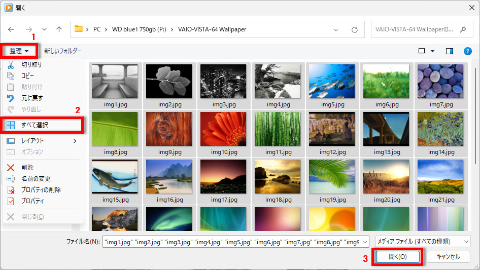 Windows11のWindows Media Player従来版で写真をスライドショーで