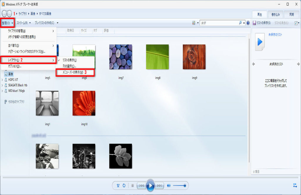 Windows Media Player従来版のスライドショー