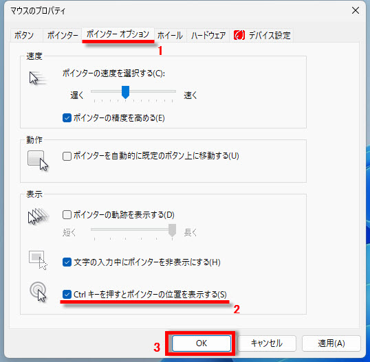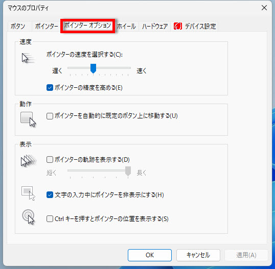 1 「ポインターオプション」タブ画面が表示されます、