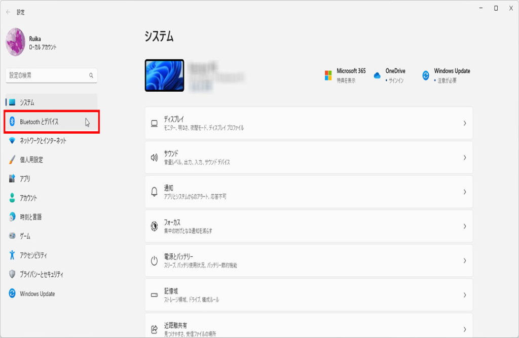 「設定」画面が表示されます「Bluetoothとデバイス」をクリックします。