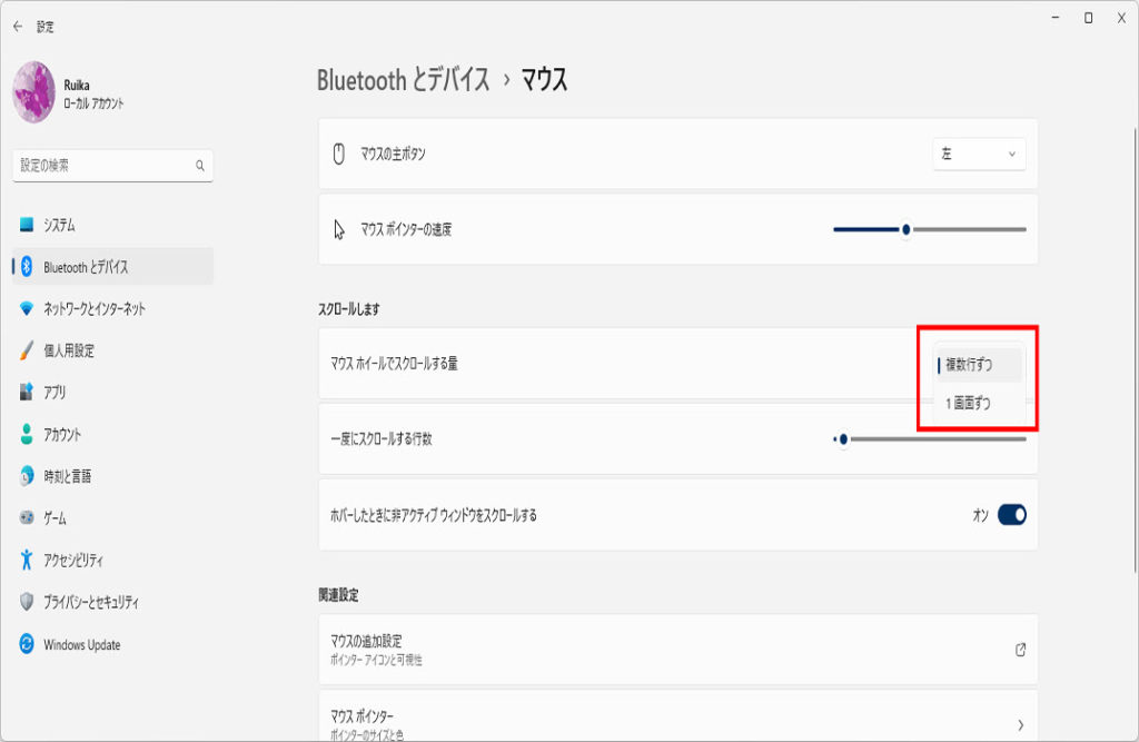 Windows10でマウスホイールのスクロール(移動量)を変更する方法