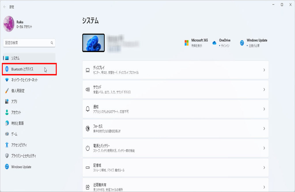 「設定」画面が表示されます「Bluetoothとデバイス」をクリックします。