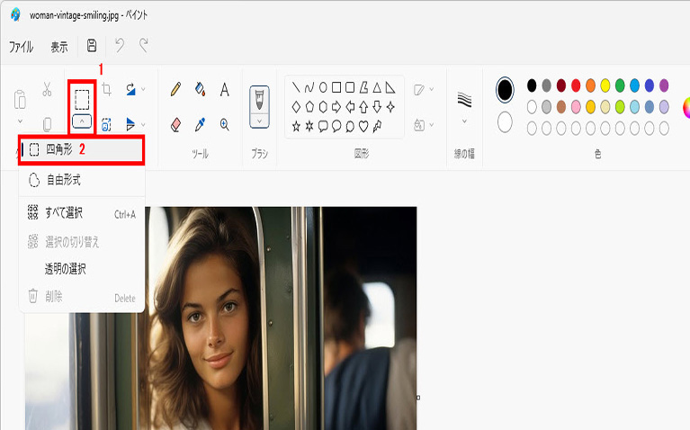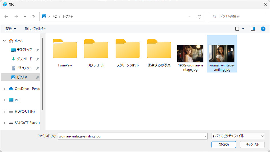 (woman-vintage-smiling.jpgを選択、開くボタンをクリック)