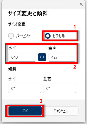 2 「水平」と「垂直」にサイズを入力して