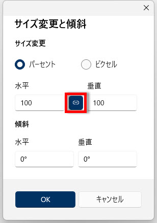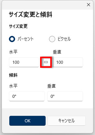 サイズ変更を「パーセント」単位で指定する場合