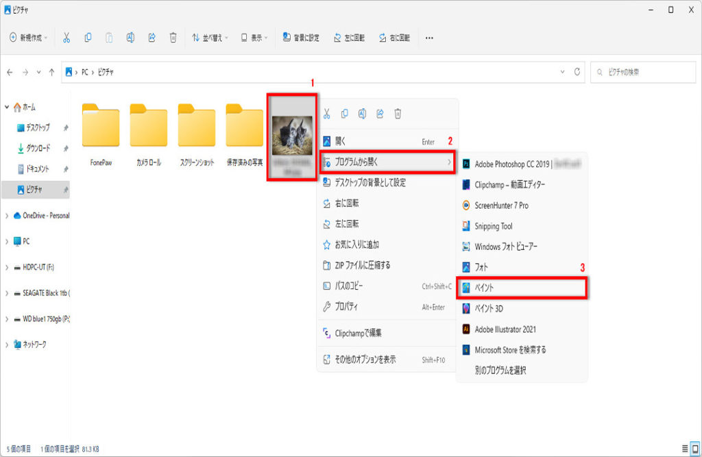 1 写真ファイルを右クリック