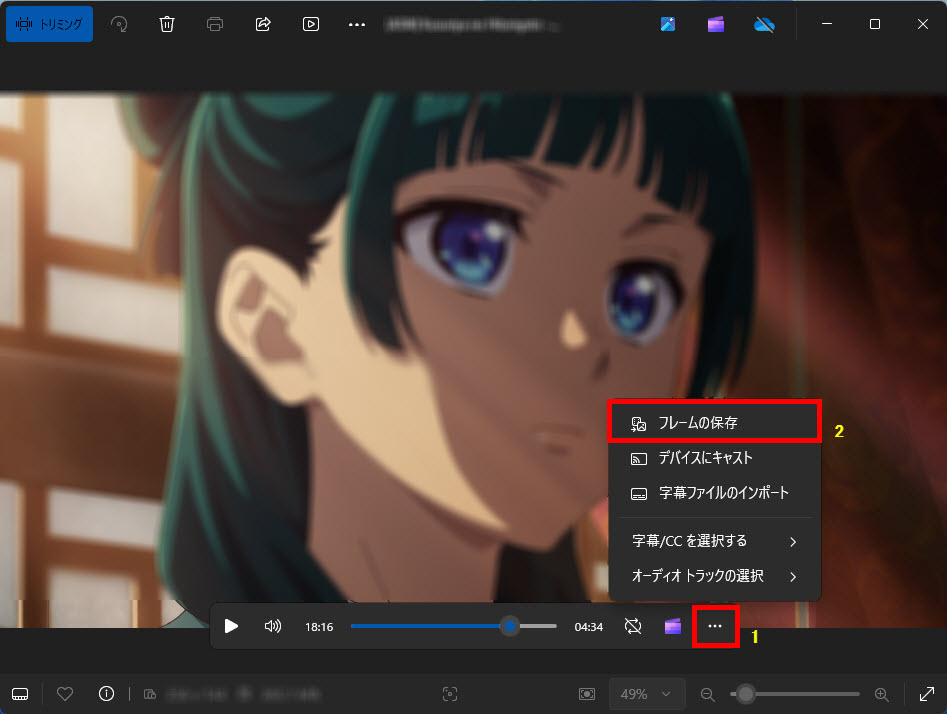 Windows11の「フォト」は、動画の特定位置を画像に変換する機能があります、