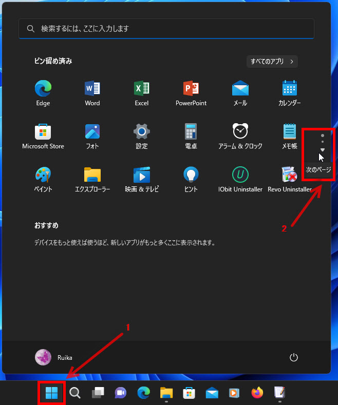 2 ピン留め済みのアプリは、複数のページに表示されます、次のページを表示するには