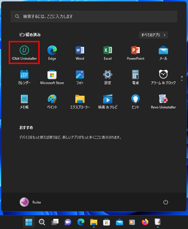 Windows11の「スタート」メニューは、既定でアプリがピン留めされています、