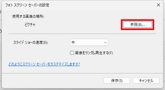 「フォトスクリーンセーバーの設定」が表示されます「参照」をクリックします。