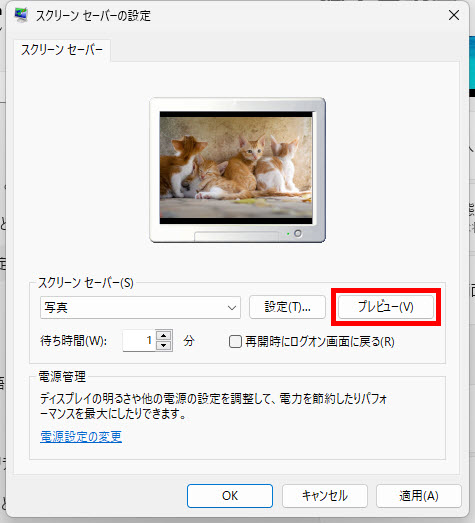 スクリーンセーバーの設定(プレビューで確認)
