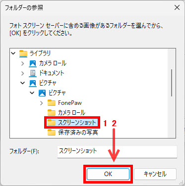 1 スクリーンセーバーに設定したい画像が保存されているフォルダーを指定して