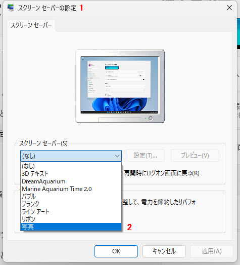 1 「スクリーンセーバーの設定」が表示されます