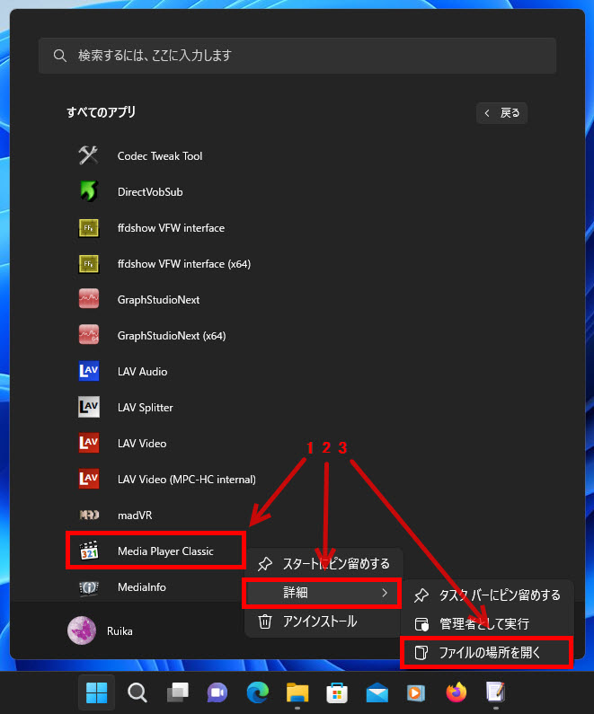 1 「Media Player Classic」を右クリック、
