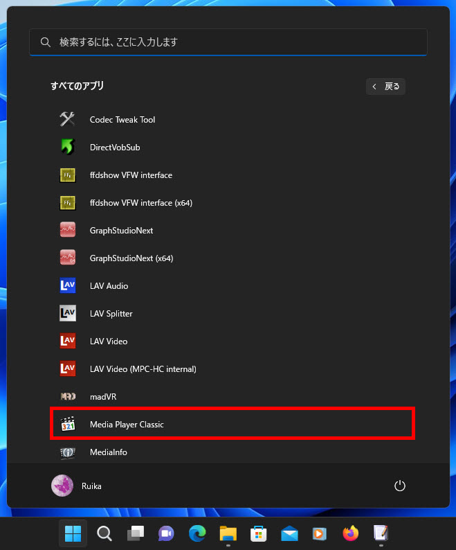 「Media Player Classic」の表示を確認します。