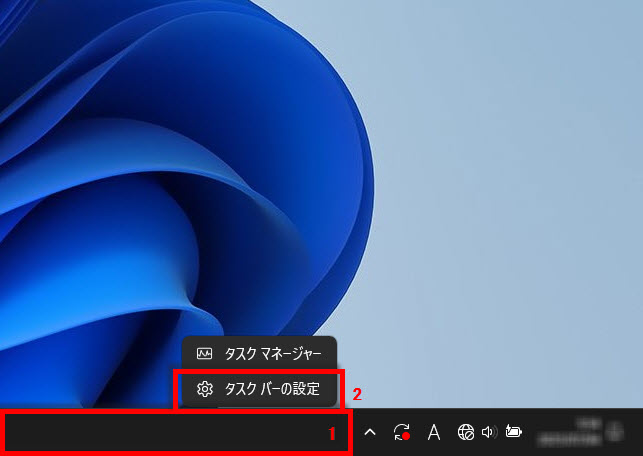 2 「タスクバーの設定」をクリックします。