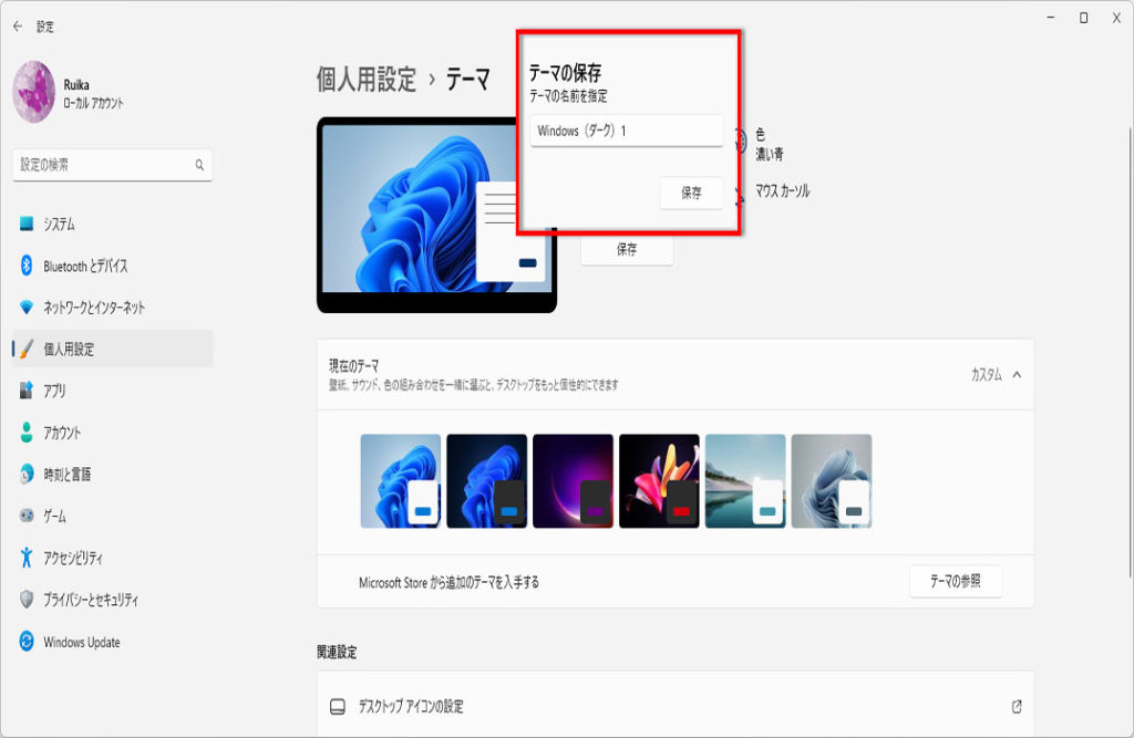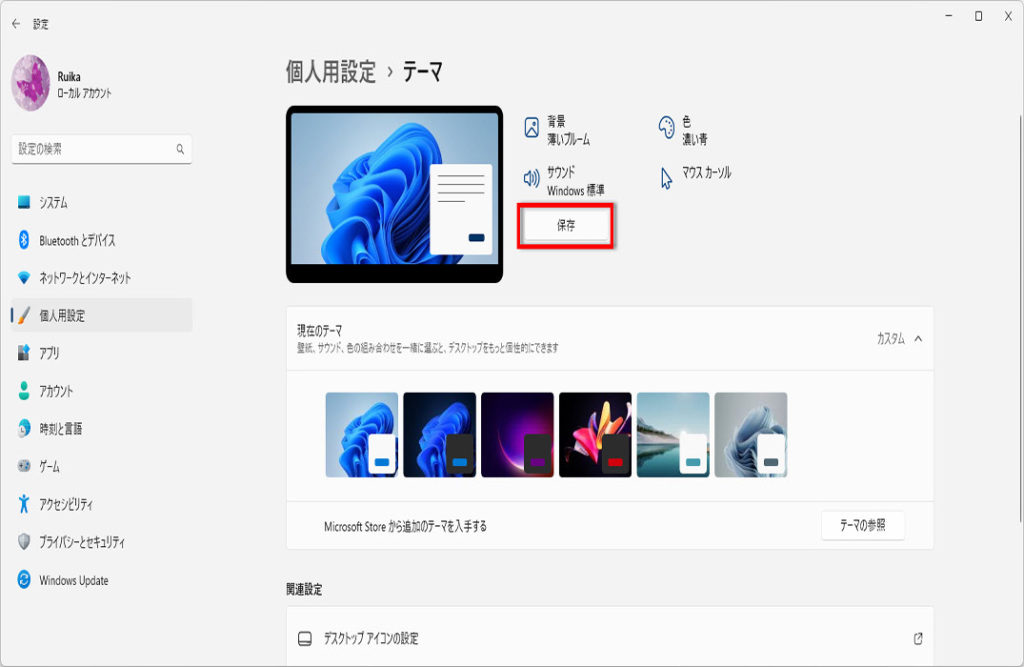 デスクトップのテーマを保存