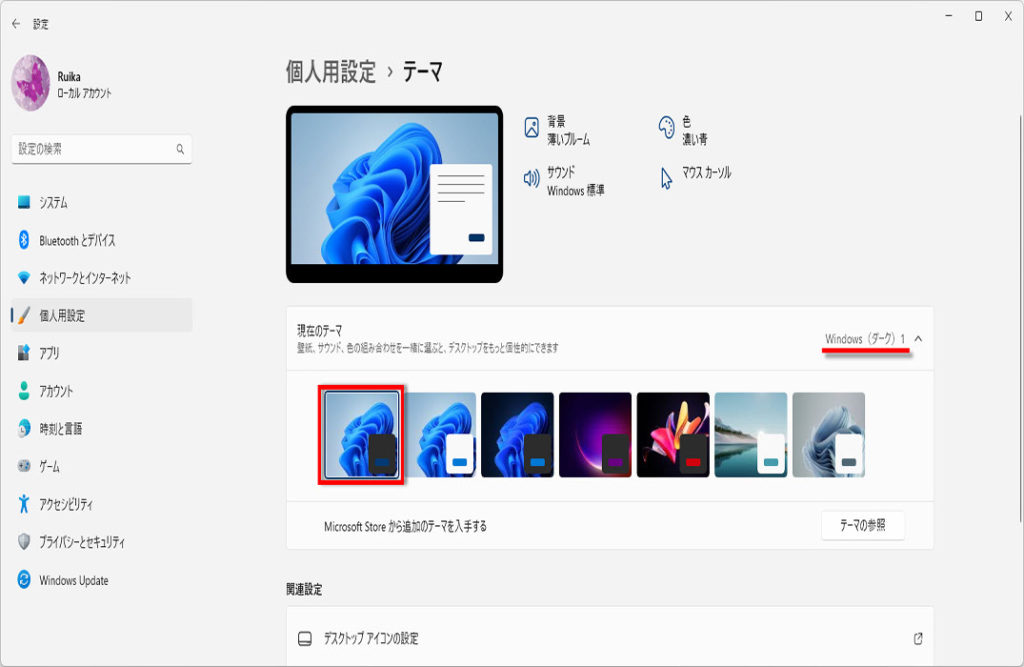 「Windows(ダーク)1」をクリックします。