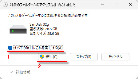 1 すべての項目にこれを実行する(A)にチェックを入れて