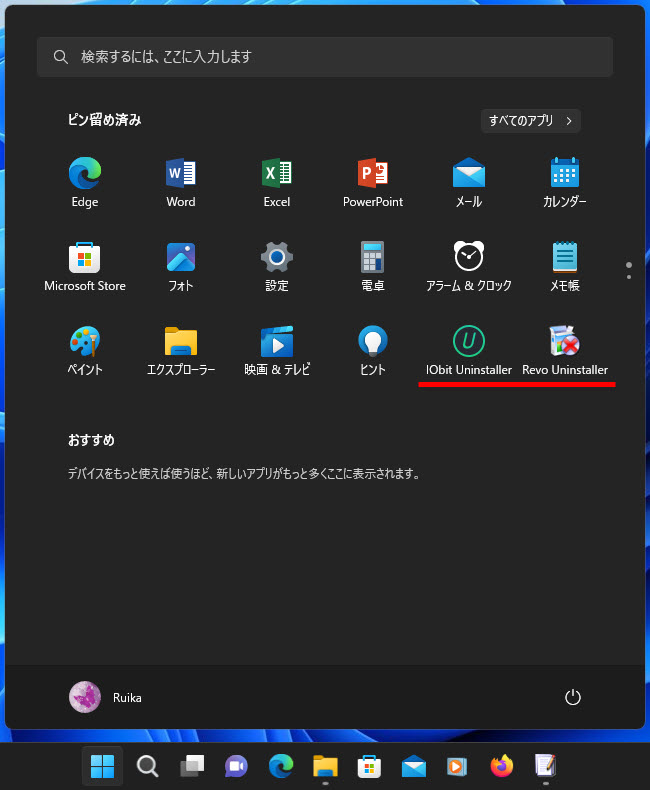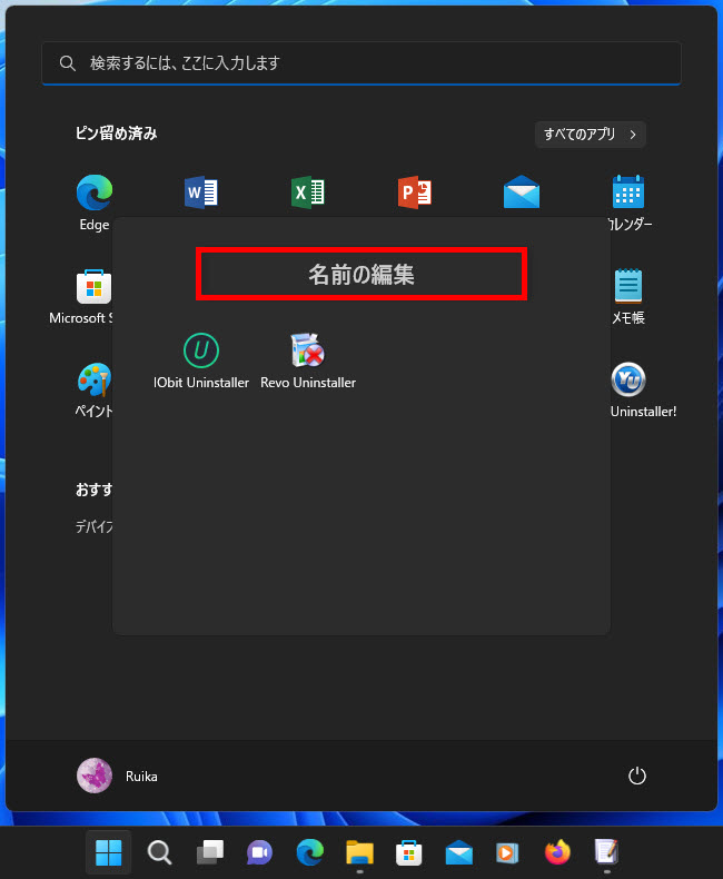 Windows11の「スタート」メニューは、既定でアプリがピン留めされています、